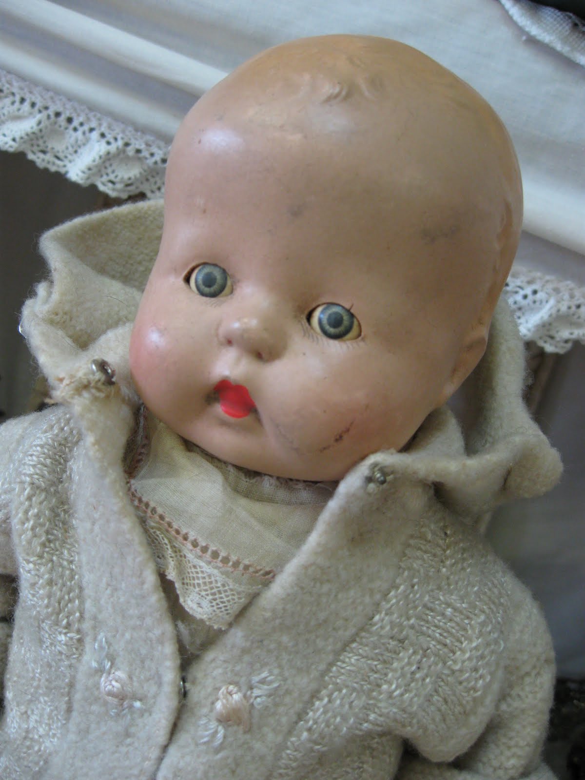 Your doll is so sweet! Can't you imagine all the loving she has had and now she is getting some more from you! She came with the nicest wool sweater.